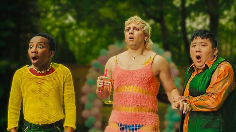 People pleasers and their partners attend an obnoxious gender reveal party which spirals out of control in Mo Matton's anarchic satire.